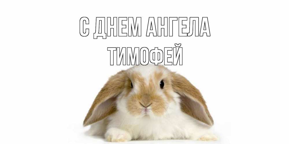 Открытка С днем Ангела Тимофей. вислоухий кролик желает не болеть. вислоухий кролик белого и коричневого цвета