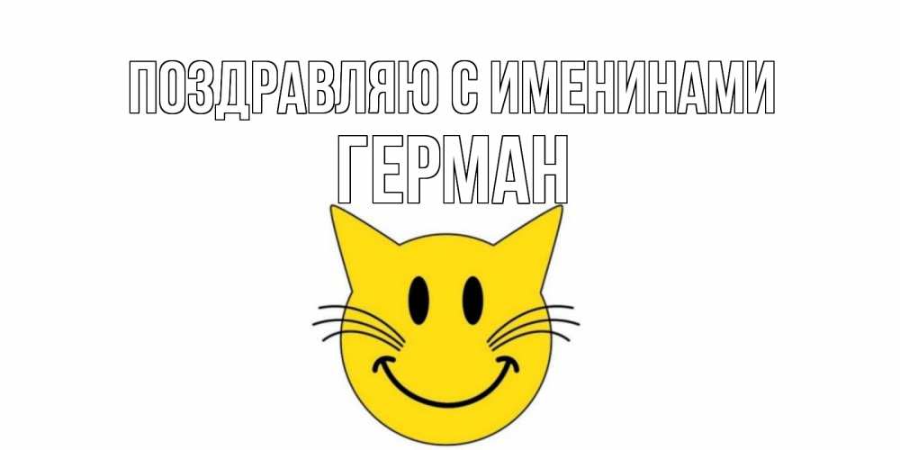 Открытка Поздравляю с именинами Герман. кот улыбается. кот, улыбка