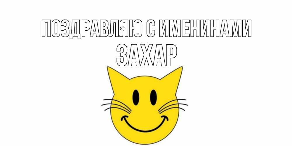 Открытка Поздравляю с именинами Захар. кот улыбается. кот, улыбка