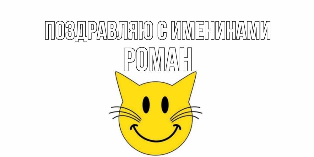 Открытка Поздравляю с именинами Роман. кот улыбается. кот, улыбка