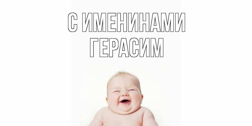 Открытка С именинами Герасим. ребенок с улыбкой. ребенок
