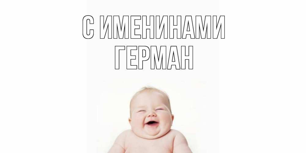 Открытка С именинами Герман. ребенок с улыбкой. ребенок