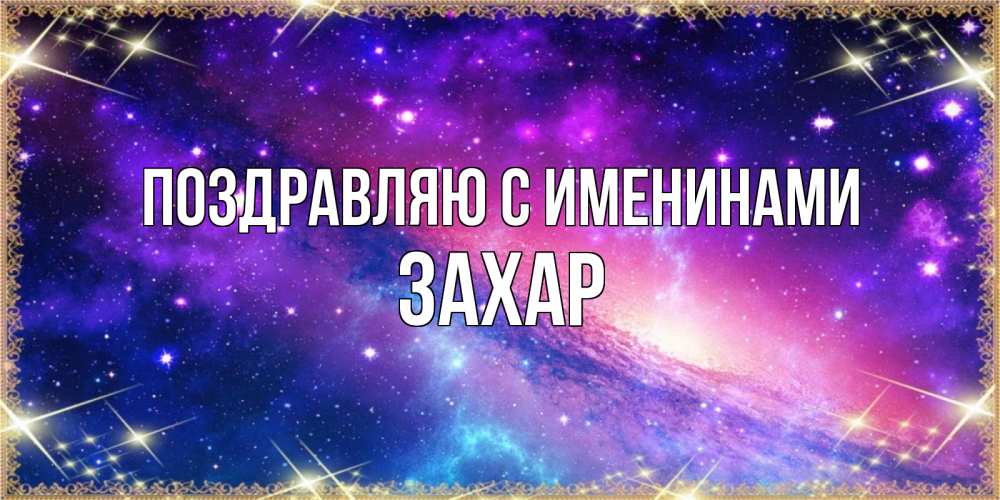 Открытка Поздравляю с именинами Захар. спокойной ночи галактика. пожелания споки ноки