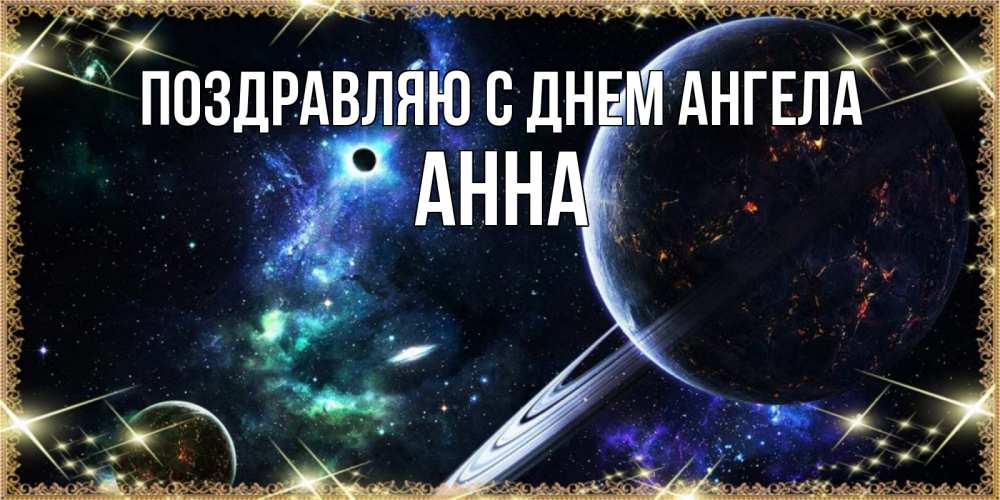 Открытка Поздравляю с днем Ангела Анна. спокойно ночи планета с кольцами. сладких снов и спокойной ночи