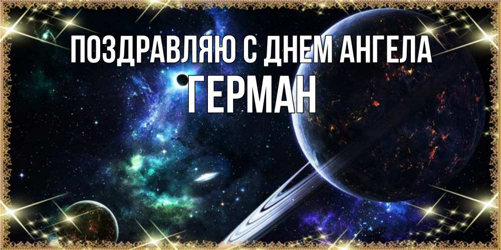 Открытка Поздравляю с днем Ангела Герман. спокойно ночи планета с кольцами. сладких снов и спокойной ночи