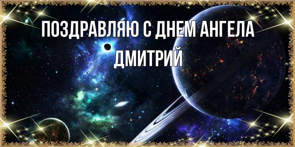 Открытка Поздравляю с днем Ангела Дмитрий. спокойно ночи планета с кольцами. сладких снов и спокойной ночи