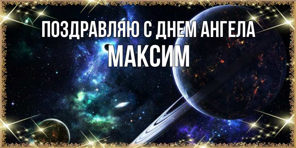 Открытка Поздравляю с днем Ангела Максим. спокойно ночи планета с кольцами. сладких снов и спокойной ночи