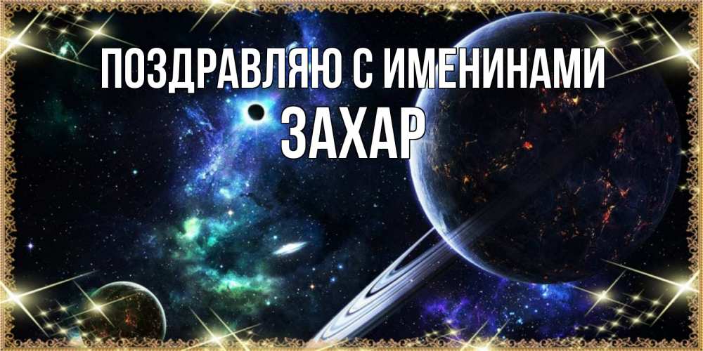Открытка Поздравляю с именинами Захар. спокойно ночи планета с кольцами. сладких снов и спокойной ночи