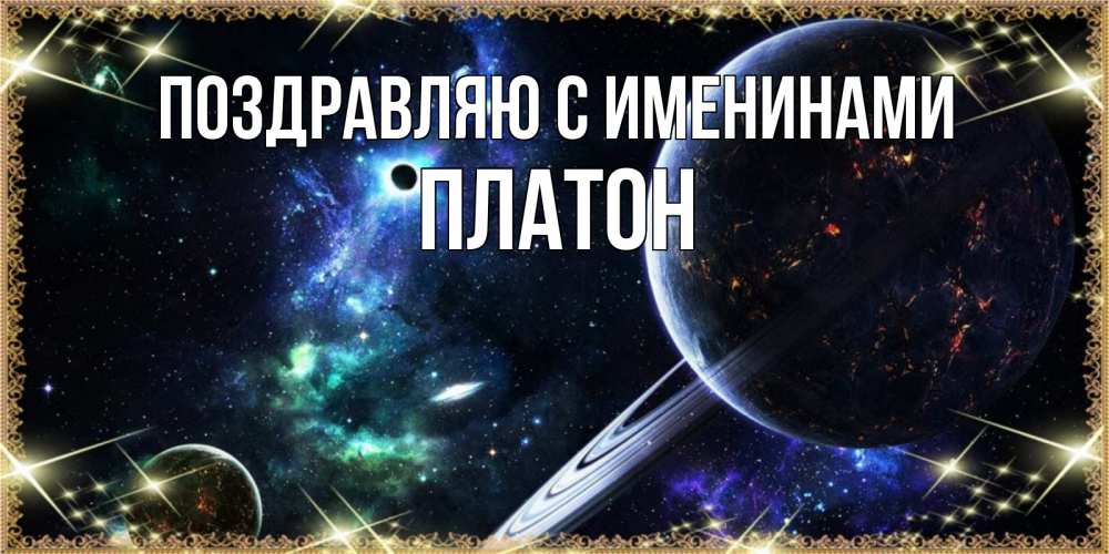 Открытка Поздравляю с именинами Платон. спокойно ночи планета с кольцами. сладких снов и спокойной ночи