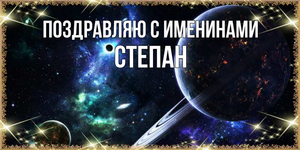 Открытка Поздравляю с именинами Степан. спокойно ночи планета с кольцами. сладких снов и спокойной ночи