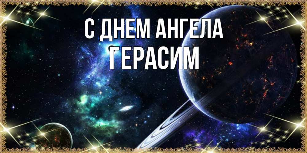 Открытка С днем Ангела Герасим. спокойно ночи планета с кольцами. сладких снов и спокойной ночи