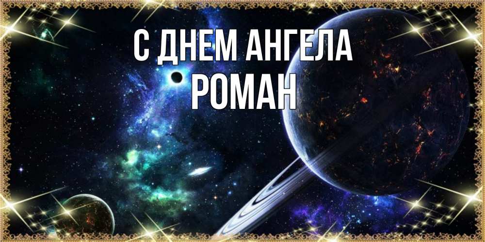 Открытка С днем Ангела Роман. спокойно ночи планета с кольцами. сладких снов и спокойной ночи