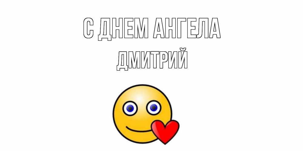 Открытка С днем Ангела Дмитрий. смайл с голубыми глазами и сердецком. смайл,сердце