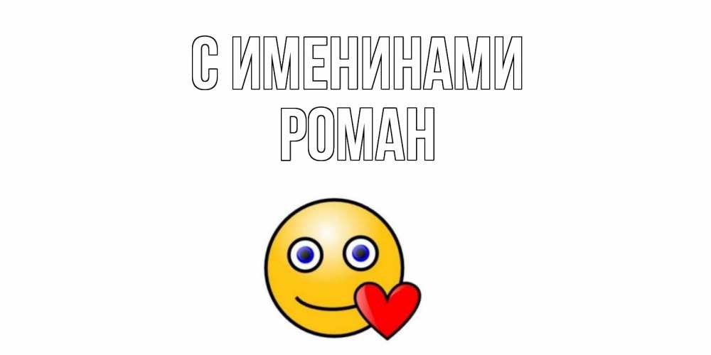 Открытка С именинами Роман. смайл с голубыми глазами и сердецком. смайл,сердце