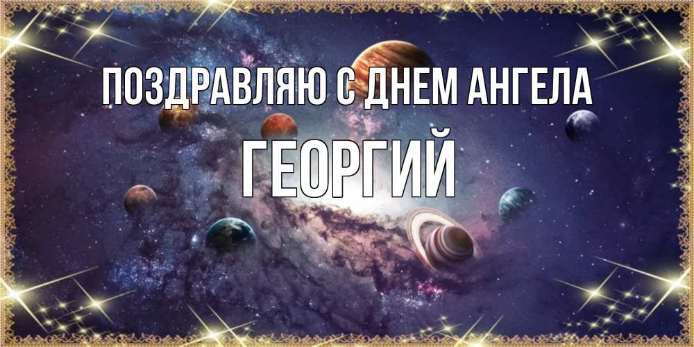 Открытка Поздравляю с днем Ангела Георгий. планеты солнечной системы. желаем хорошей ночи