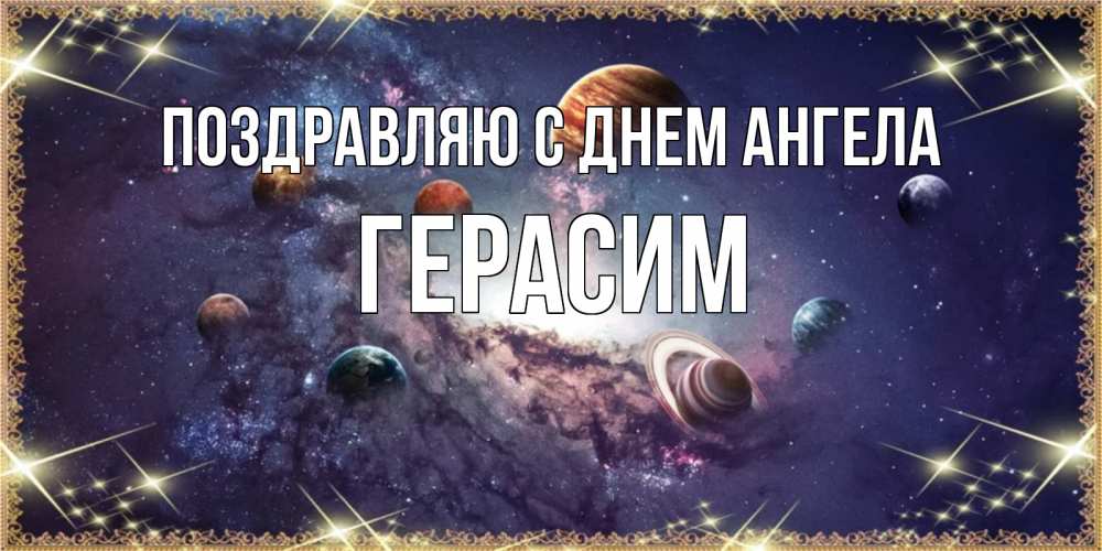 Открытка Поздравляю с днем Ангела Герасим. планеты солнечной системы. желаем хорошей ночи