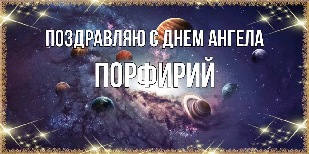 Открытка Поздравляю с днем Ангела Порфирий. планеты солнечной системы. желаем хорошей ночи