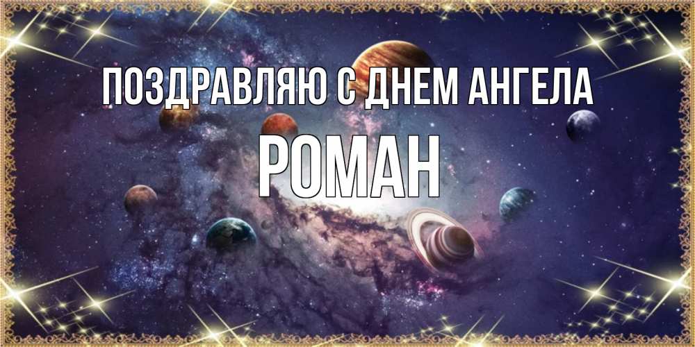 Открытка Поздравляю с днем Ангела Роман. планеты солнечной системы. желаем хорошей ночи