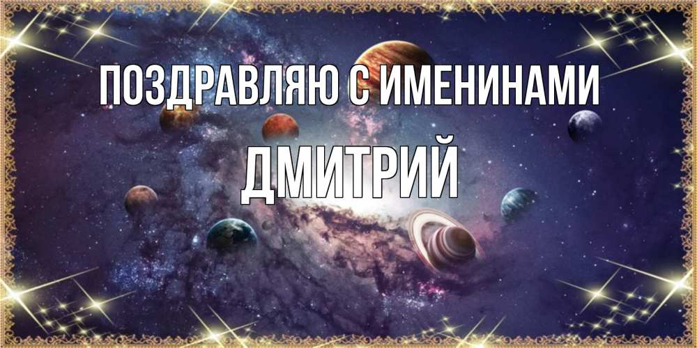 Открытка Поздравляю с именинами Дмитрий. планеты солнечной системы. желаем хорошей ночи