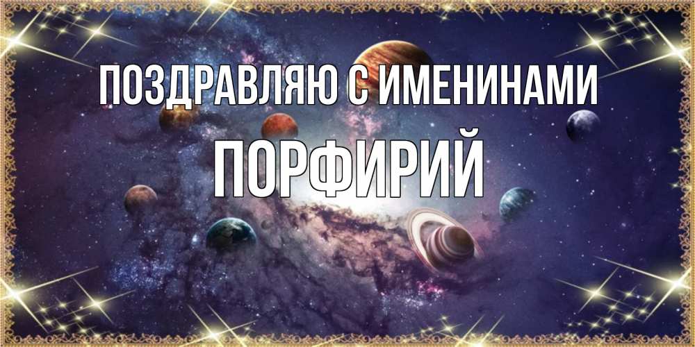 Открытка Поздравляю с именинами Порфирий. планеты солнечной системы. желаем хорошей ночи