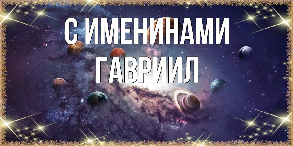 Открытка С именинами Гавриил. планеты солнечной системы. желаем хорошей ночи