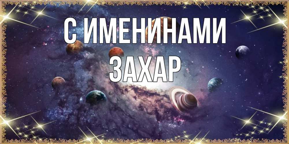 Открытка С именинами Захар. планеты солнечной системы. желаем хорошей ночи