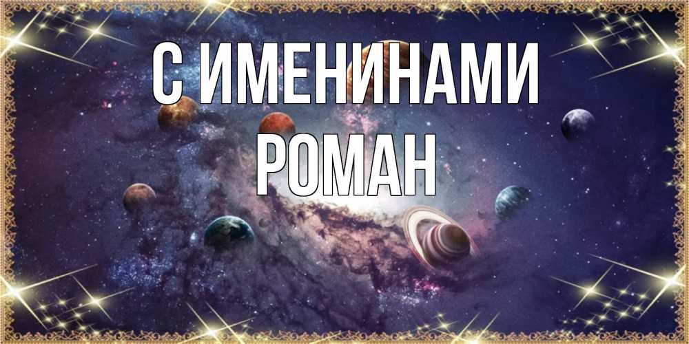 Открытка С именинами Роман. планеты солнечной системы. желаем хорошей ночи