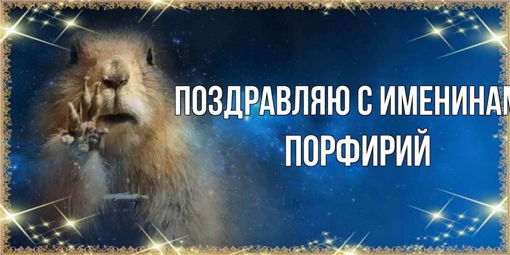 Открытка Поздравляю с именинами Порфирий. сурок желает сладкой ночи. спокойной ночи сладких снов