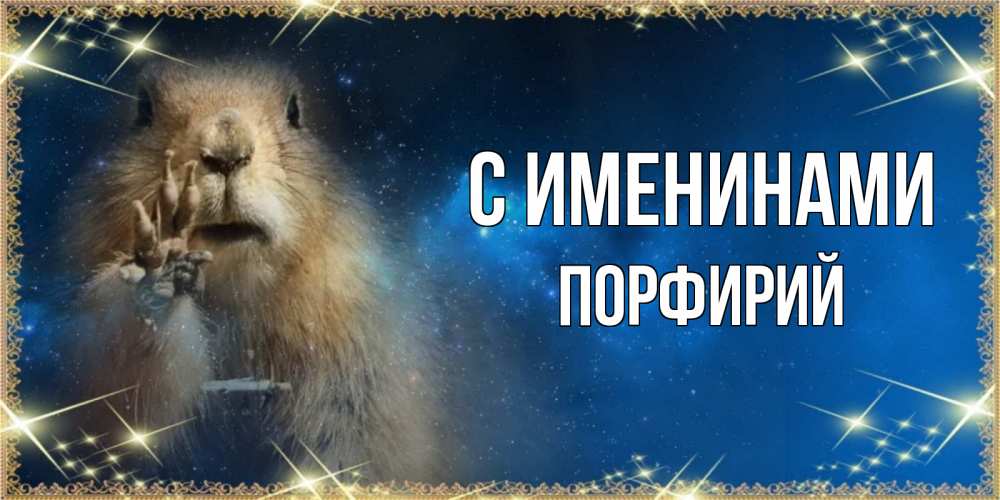 Открытка С именинами Порфирий. сурок желает сладкой ночи. спокойной ночи сладких снов