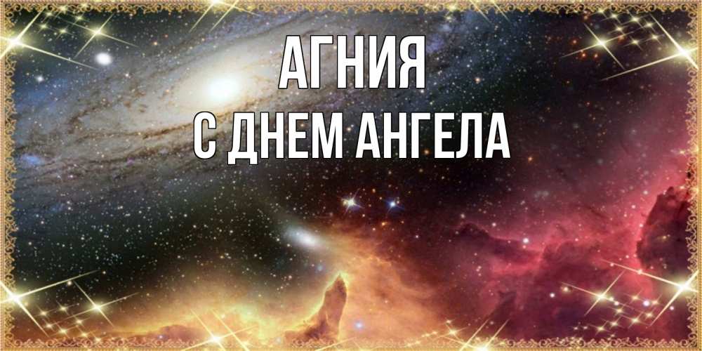 Открытка Агния С днем ангела. космические туманности и галактики. пожелание спокойного сна