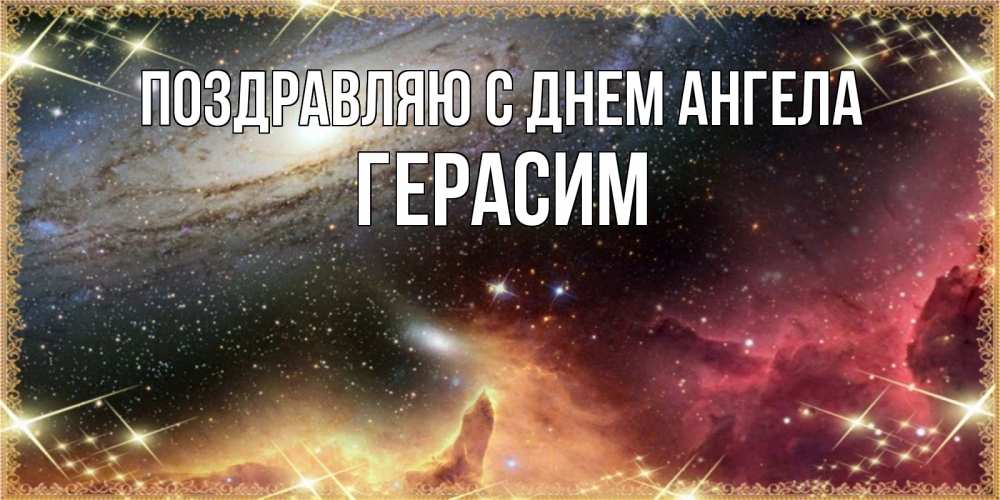 Открытка Поздравляю с днем Ангела Герасим. космические туманности и галактики. пожелание спокойного сна