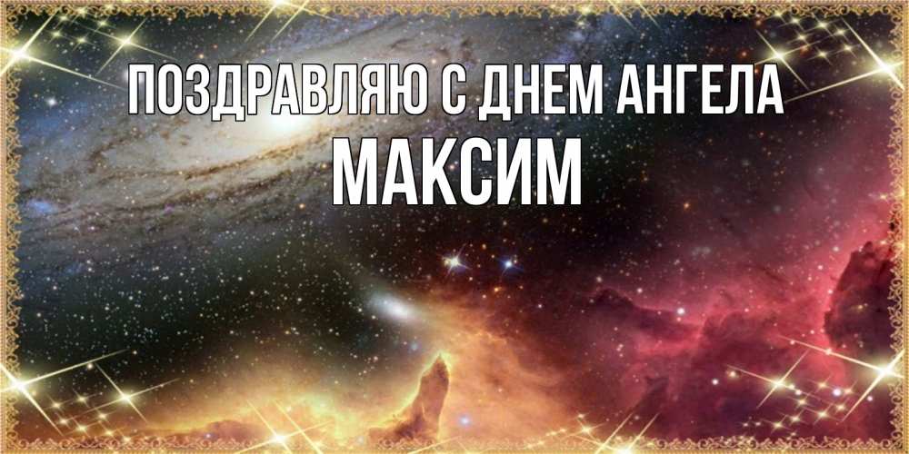 Открытка Поздравляю с днем Ангела Максим. космические туманности и галактики. пожелание спокойного сна