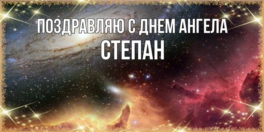 Открытка Поздравляю с днем Ангела Степан. космические туманности и галактики. пожелание спокойного сна