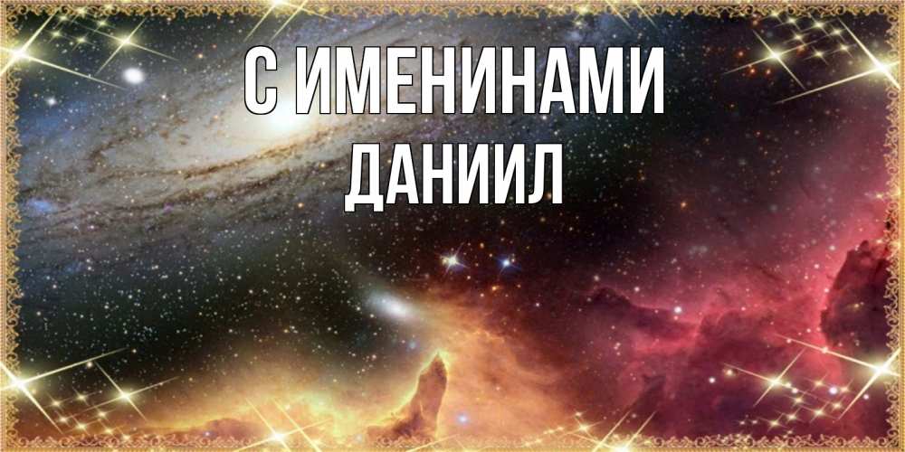 Открытка С именинами Даниил. космические туманности и галактики. пожелание спокойного сна