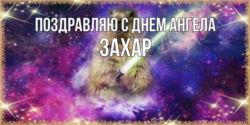 Открытка Поздравляю с днем Ангела Захар. сурок джедай в космосе. спокойной ночи в стиле звездных войн