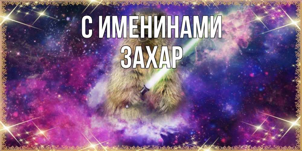 Открытка С именинами Захар. сурок джедай в космосе. спокойной ночи в стиле звездных войн