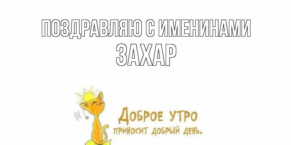Открытка Поздравляю с именинами Захар. Кот и солнце доброе утро. кот, солнце