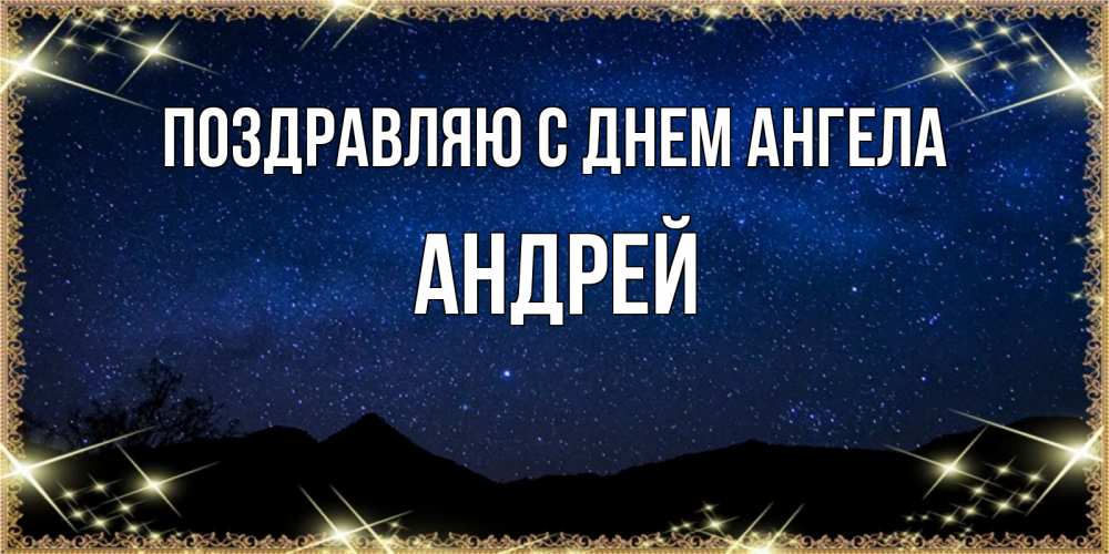 Открытка Поздравляю с днем Ангела Андрей. небо на фоне гор. млечный путь