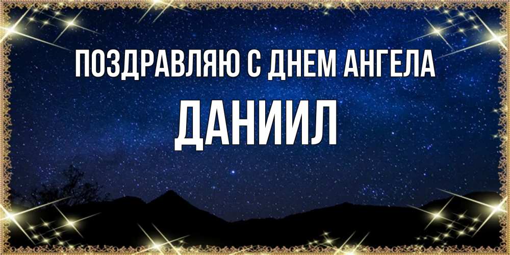 Открытка Поздравляю с днем Ангела Даниил. небо на фоне гор. млечный путь
