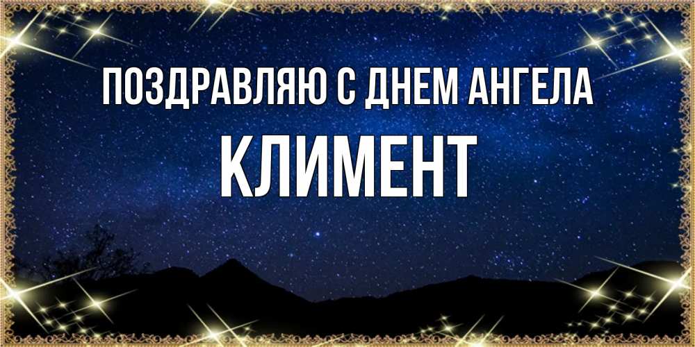 Открытка Поздравляю с днем Ангела Климент. небо на фоне гор. млечный путь