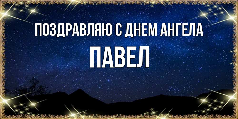 Открытка Поздравляю с днем Ангела Павел. небо на фоне гор. млечный путь