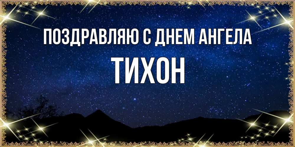 Открытка Поздравляю с днем Ангела Тихон. небо на фоне гор. млечный путь