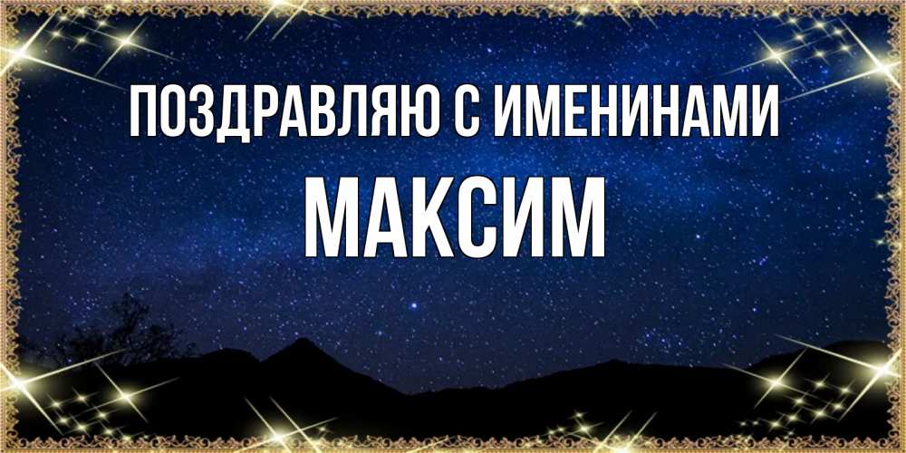 Открытка Поздравляю с именинами Максим. небо на фоне гор. млечный путь