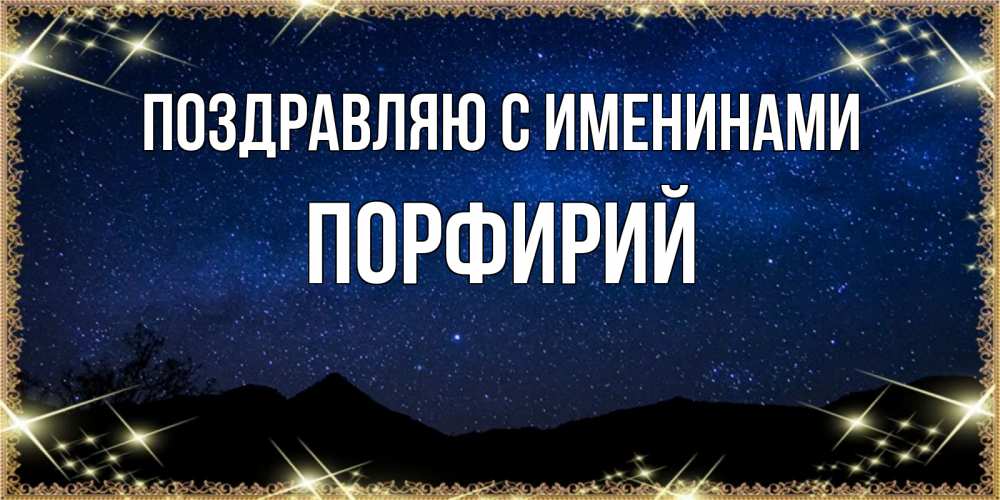 Открытка Поздравляю с именинами Порфирий. небо на фоне гор. млечный путь