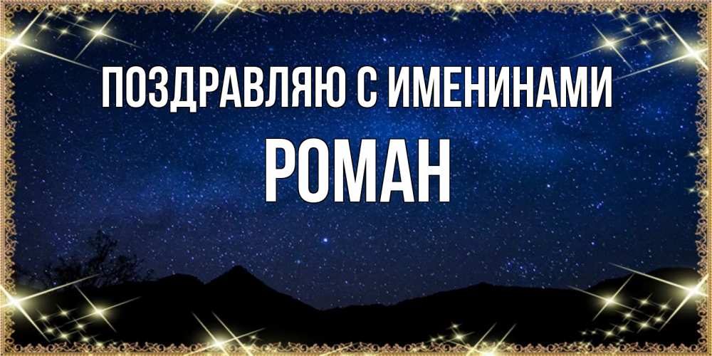 Открытка Поздравляю с именинами Роман. небо на фоне гор. млечный путь