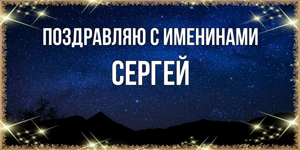 Открытка Поздравляю с именинами Сергей. небо на фоне гор. млечный путь