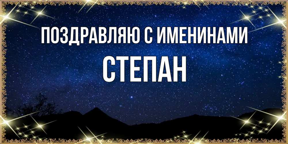 Открытка Поздравляю с именинами Степан. небо на фоне гор. млечный путь