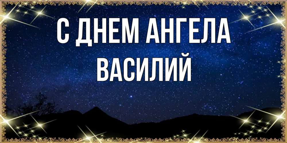 Открытка С днем Ангела Василий. небо на фоне гор. млечный путь