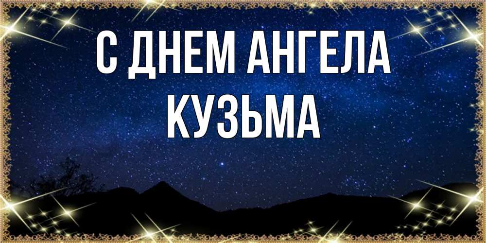 Открытка С днем Ангела Кузьма. небо на фоне гор. млечный путь