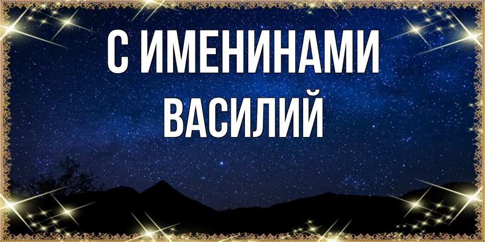 Открытка С именинами Василий. небо на фоне гор. млечный путь